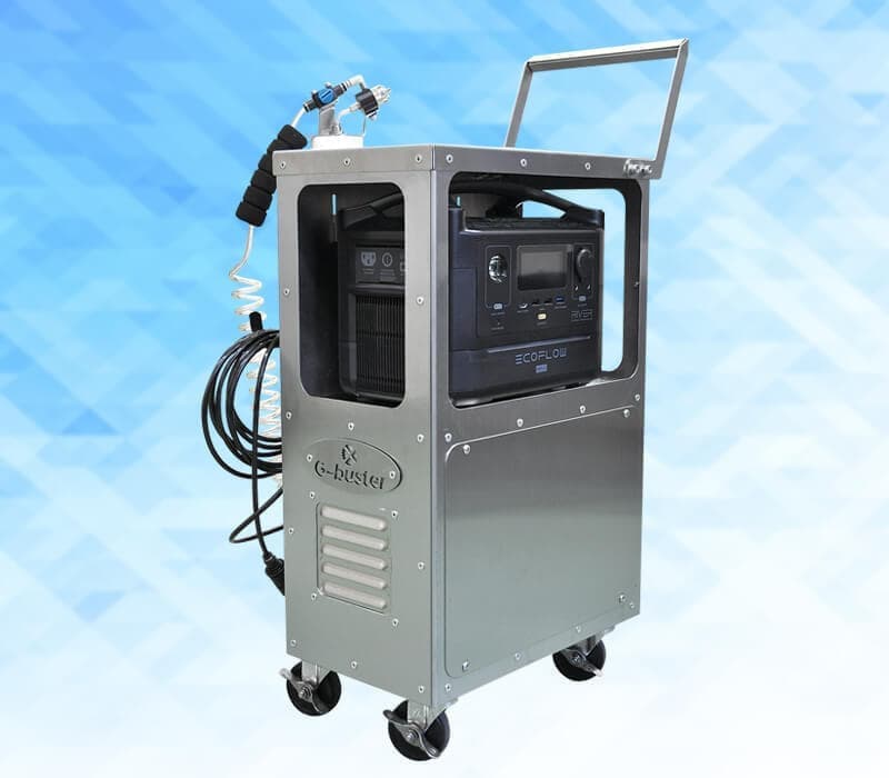 ポータブルバッテリーを搭載し、ボトルハンドガン(2セット)を使って任意の場所で利用可能。キャスター付きワゴンにコンパクトに納めらているのでどこにでも持ち運べます。また緊急避難時など、電源の確保が難しい場所でも活躍することができます。