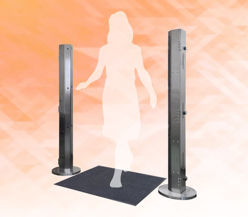 様々な施設の出入り口に設置して身体や衣服の除菌・洗浄に利用できます。左右合計18ヶ所(片側3ヶ所×3列)のノズルから微細ミストを噴霧します。(Gバスター4のポータブルバッテリーを使用することで、どこにでも持ち運んで設置し、利用することができます)