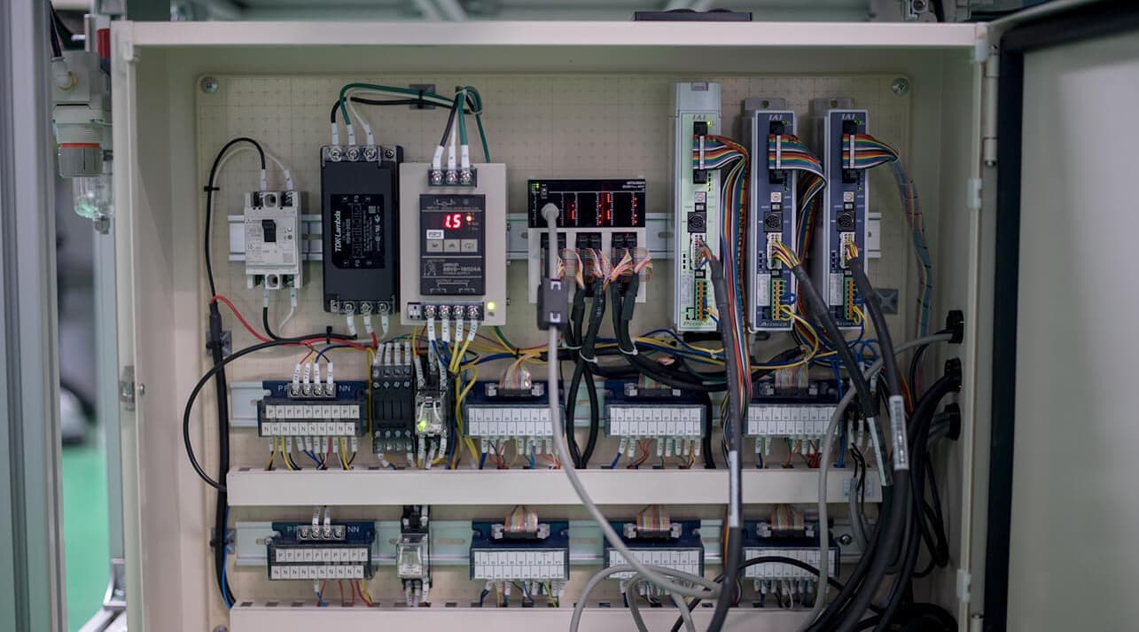 配電機器や制御機器などの様々な電気機器を収納する筐体となる制御盤は、耐久性や耐腐食性、コスト面などを考慮しながら、お客様の使用目的に照らし合わせ、鉄やアルミ、ステンレス鋼板等の中から最適な素材を選択し製作いたします。屋内使用か屋外使用なのかにより熱対策・防水・防塵対策もしっかりと施し、安全で堅牢性を備えた制御盤を製作いたします。